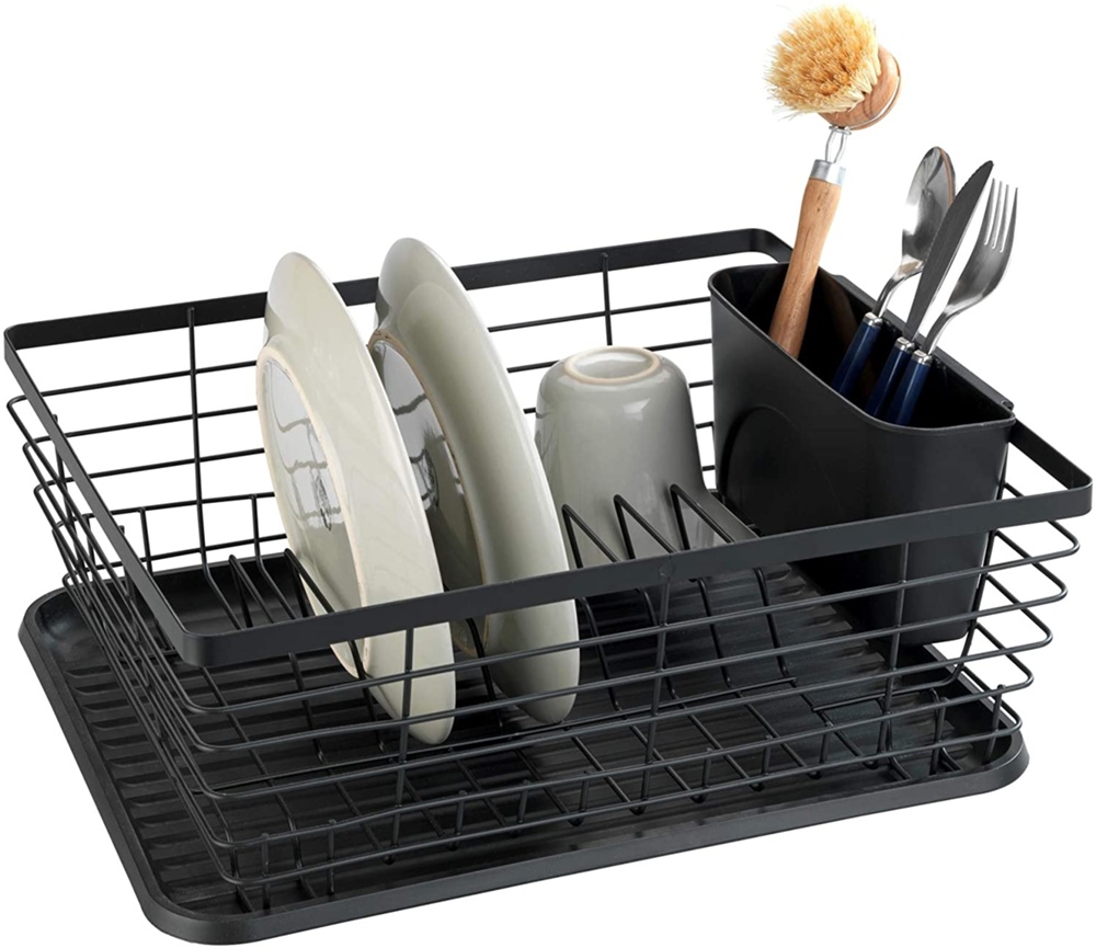 Diskställ med bestickkorg, Metall, DRIP RACK, 36 x 30 x H 15 cm, Svart