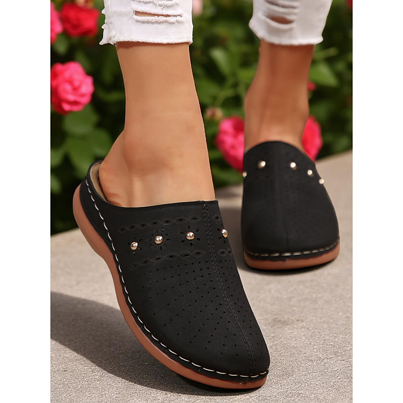 Women's Cutout Slip-On Mules – Breathable Comfort Clogs for Casual Days, Backyard Relaxing and Patio Tea Time