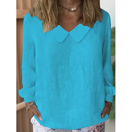 Per donna Camicie di cotone e lino Top estivi Blusa Top Eleganti Arricciato Patchwork Tasca Tinta unica Semplice Elegante Vintage Signore Manica 3/4 Colletto a Camicia Top Regolari Quotidiano Lavoro
