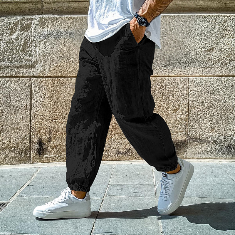 Men's Joggers Linen Pants Trousers Summer Pants Baggy Pants Drawstring Elastic Cuff Plain Comfort Breathable Full Length Daily Streetwear Holiday Vacation Fashion Blue Black Inelastic