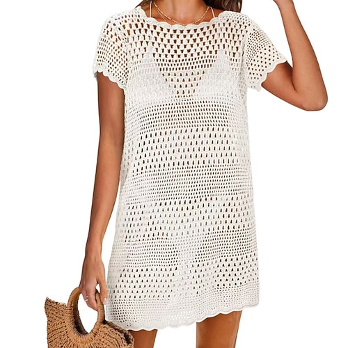 Per donna Costumi da bagno Copricostume Costume da bagno Taglio Uncinetto Vacanza Abbigliamento da Spiaggia Semplice Girocollo Maniche Corte Costumi da bagno