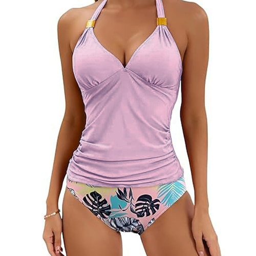 Per donna Costumi da bagno Bikini Due pezzi Birichino Costume da bagno Senza schiena Vacanza Abbigliamento da Spiaggia Floreale All'americana Senza Maniche Costumi da bagno