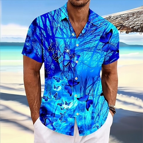 Per uomo Farfalla Piante Tropicali Bagliore al neon Camicia hawaiana estiva Camicia con Bottoni Camicia Aloha Manica Corta Hawaiano Casuale Vacanza Estate Primavera Collo ripiegato Stampa 3D camicie