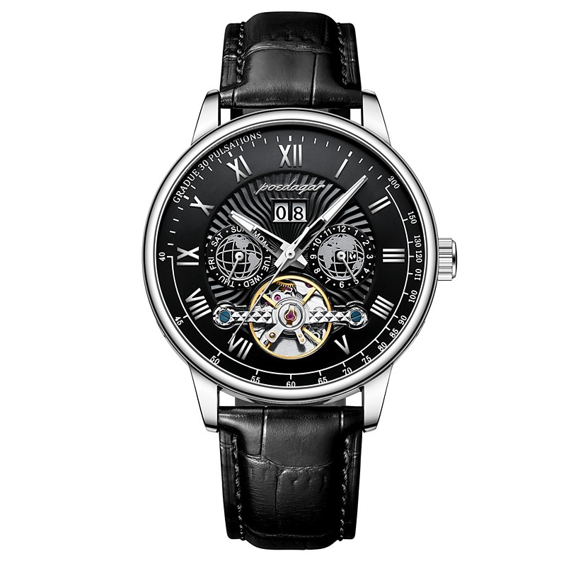 Automatique Mechanical Hollow Watch Luxury Waterproof DateWeek Leather Fashion Men's Watch Business Male Clock Leisure