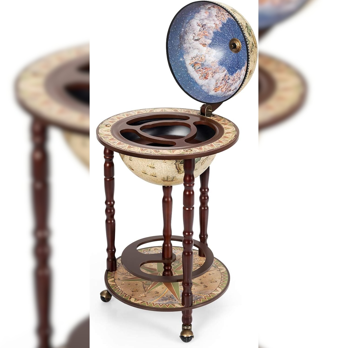 COSTWAY Globus Barwagen, Globus Bar, Hausbar Servierwagen, Weinregal mit Rädern (Beige)