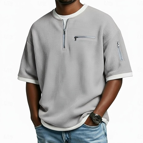 Per uomo Maglietta Waffle Maglietta Camicia a Maniche Corte Manica Corta Girocollo Estate Primavera Blocco di colori Neutro Streetwear Sport e Outdoor Patchwork All'aperto Vacanza Abbigliamento