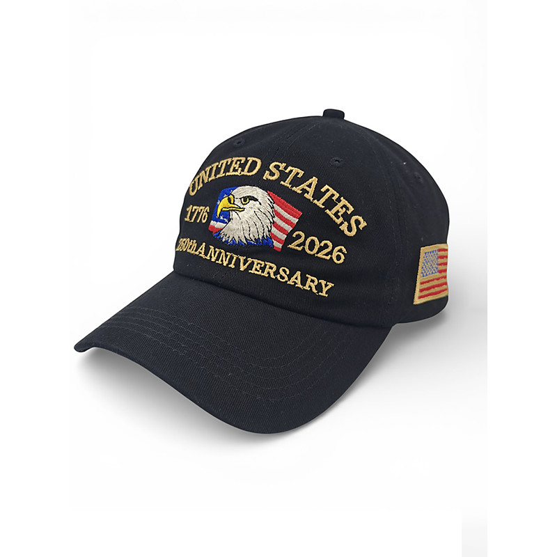 Men's Adjustable Cotton Cap with Embroidered American Flag, Multiple Colors, Ideal for Independence Day and 250th Anniversary Celebrations