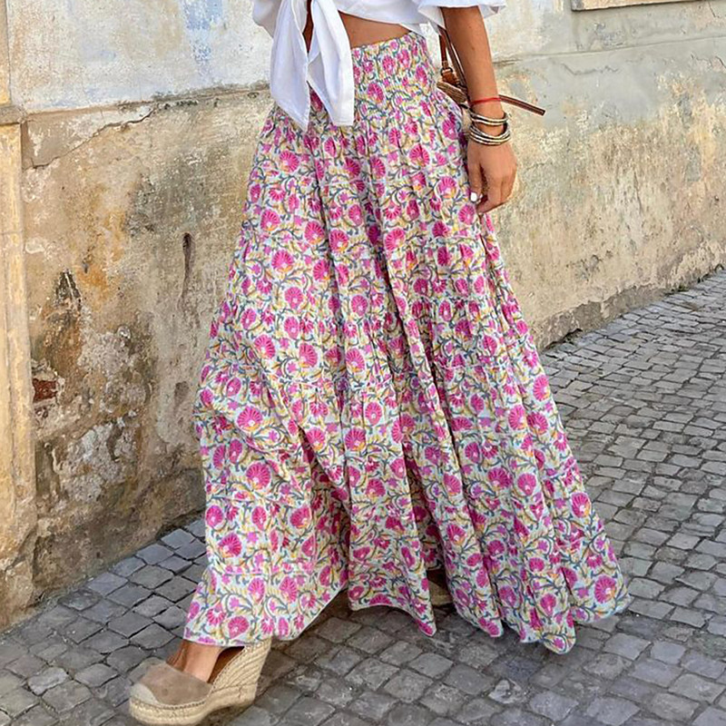 Women's Swing Long Skirt Bohemia Maxi Skirts Print Floral Street Vacation Spring Summer Fashion coastalgrandmastyle Boho Pink Rose