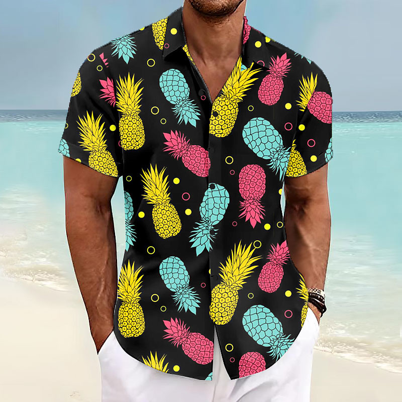Men's Pineapple Summer Hawaiian Shirt Aloha Shirt Short Sleeve Hawaiian Resort Vacation Causal Casual Summer Spring Turndown Button Up Yellow