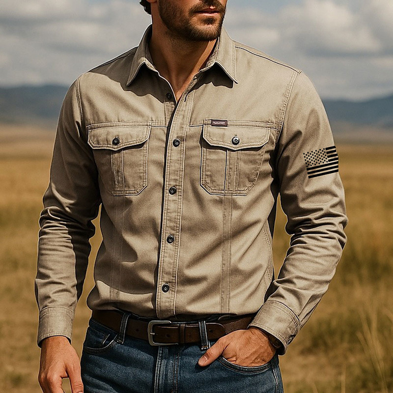 Men's American US Flag Patriotic Work Shirt Western Shirt Cargo Shirt Long Sleeve Vintage Western Casual Sports Outdoor Going out Winter Spring Fall Turndown Print Black Army Green Red Blue Khaki