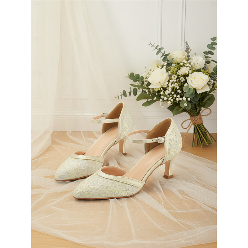 Women's Light Blue Lace Pointed Toe Heels – Elegant Romantic Style, Comfortable Kitten Heels for City Weddings and Modern Brides