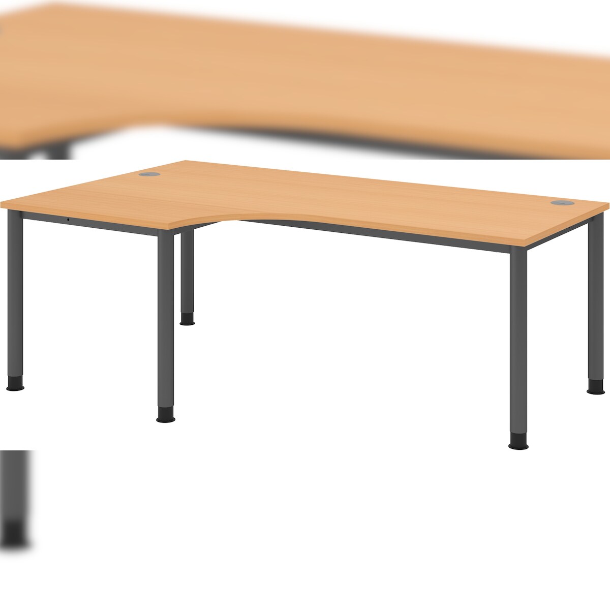 bümö höhenverstellbarer Eckschreibtisch H-Serie 200x120 cm in Buche, Gestell in Graphit - PC Tisch für's Büro manuell höhenverstellbar, Computertisch