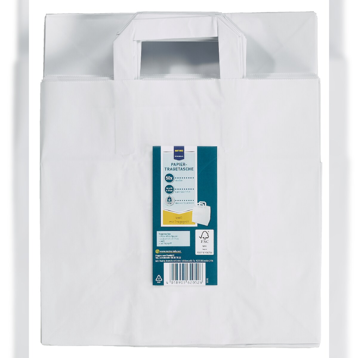 METRO PROFESSIONAL Papiertragetasche, 25 x 26 x 17 cm, weiß, 50 Stück