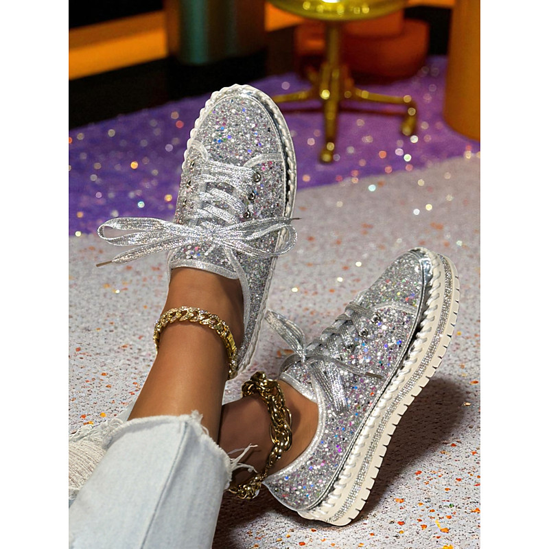 Damen Mardi Gras lilafarbene Glitzer Slip-on Sneaker – Pailletten Rave Schuhe für Musikfestivals Karnevalspartys gewagte Streetwear
