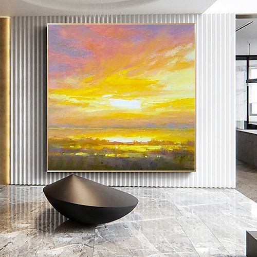 Handgefertigtes Ölgemälde auf Leinwand, Wandkunst, Dekoration, moderne abstrakte Meer-Sonnenaufgang-Landschaft für Wohnkultur, gerolltes, rahmenloses, ungedehntes Gemälde