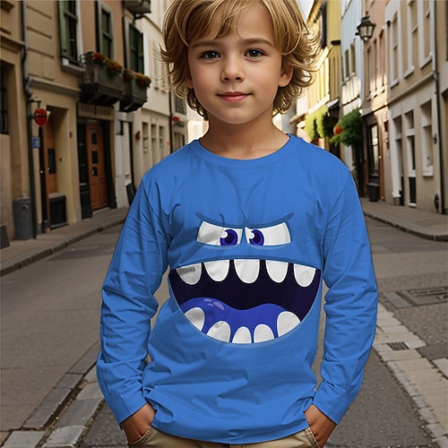 Halloween Jungen 3D Grafik Cartoon T-Shirt Langarm Frühling Herbst Mode Basic Kinder 4-12 Jahre Rundhalsausschnitt Outdoor Lässig Täglich Normale Passform