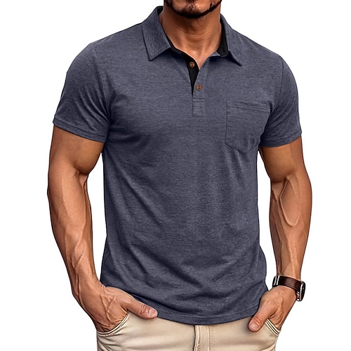 Per uomo Polo Maglia da golf Casuale Affari Bavero Manica Corta Moda Moderno Semplice Tasca Bottoni Tutte le stagioni Blu Nero Bianco Blu marino Verde Cachi Polo