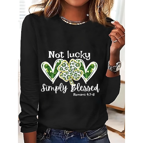 San Patrizio Per donna Maglietta Trifoglio Casual Manica Corta Girocollo Top Regolari Quotidiano Stampato Nero Bianco Rosa Blu Cachi Estate