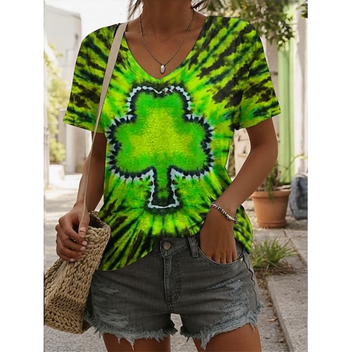 Festa di San Patrizio Per donna Maglietta Grafico Trifoglio Vintage Elegante Casual Manica Corta Scollo a V Top Regolari Quotidiano Stampato Nero Verde Estate Primavera