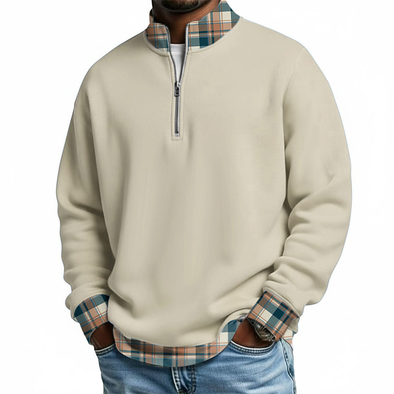 Men's Plaid Patchwork Zip Polo Shirts Long Sleeve Polo Shirts Grandad Collar Casual School Athleisure Holiday Daily Wear 3D Print Quarter Zip Polo Spring Fall Winter Blue Navy Blue Brown