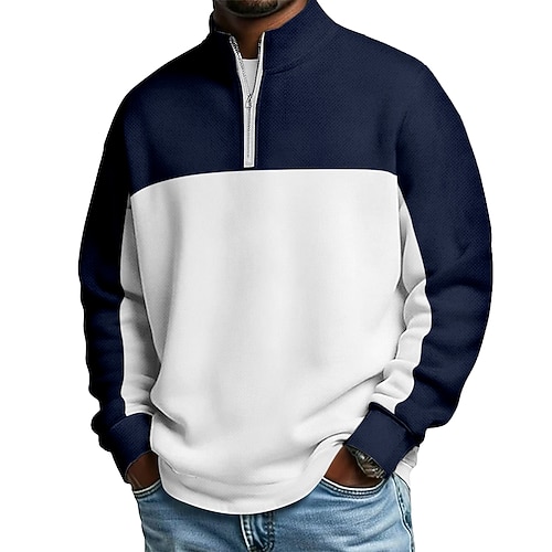 Per uomo Blocco di colori Polo con zip Manica Lunga Magliette polo Colletto alla coreana Casual Scuola Athleisure Ferie Abbigliamento quotidiano Stampa 3D Polo con cerniera a un quarto Primavera