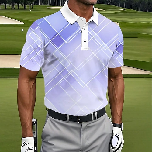 Per uomo Geometrico Polo Polo da Golf Manica Corta Magliette polo Bavero Casual Athleisure Stampa 3D Bottoni Estate Blu Viola Verde