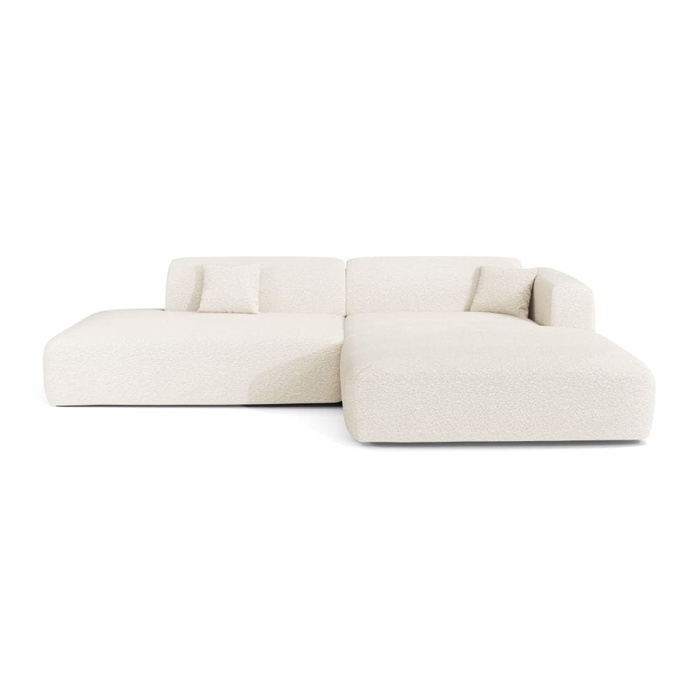 Divano angolare destro in tessuto bouclé crema 5 posti