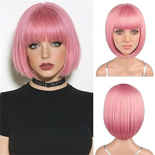 Bob-Perücke, gerader, kurzer roter Bob mit Pony, hitzebeständige Kunstfaserperücke für Damen und Mädchen mit Perückennetz, farbenfrohe Perücke mit verstellbaren Trägern für Partys, Cosplay und den