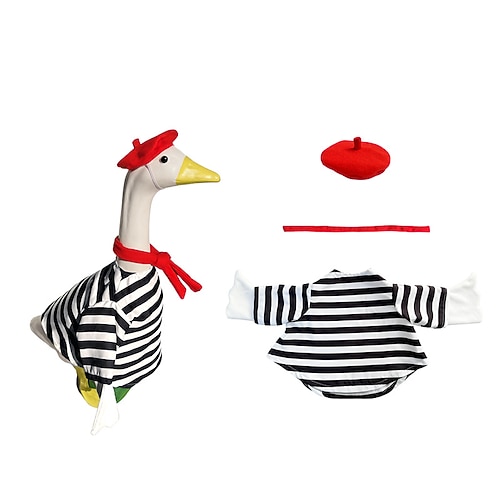 Gänse-Outfit mit roter Baskenmütze und Schal, gestreiftes Hemd, Gänsekleidung für eine 58-64 cm große Gänsefigur aus Beton, Frühlings- und Sommerdeko für den Garten, nur das Outfit, Gans nicht
