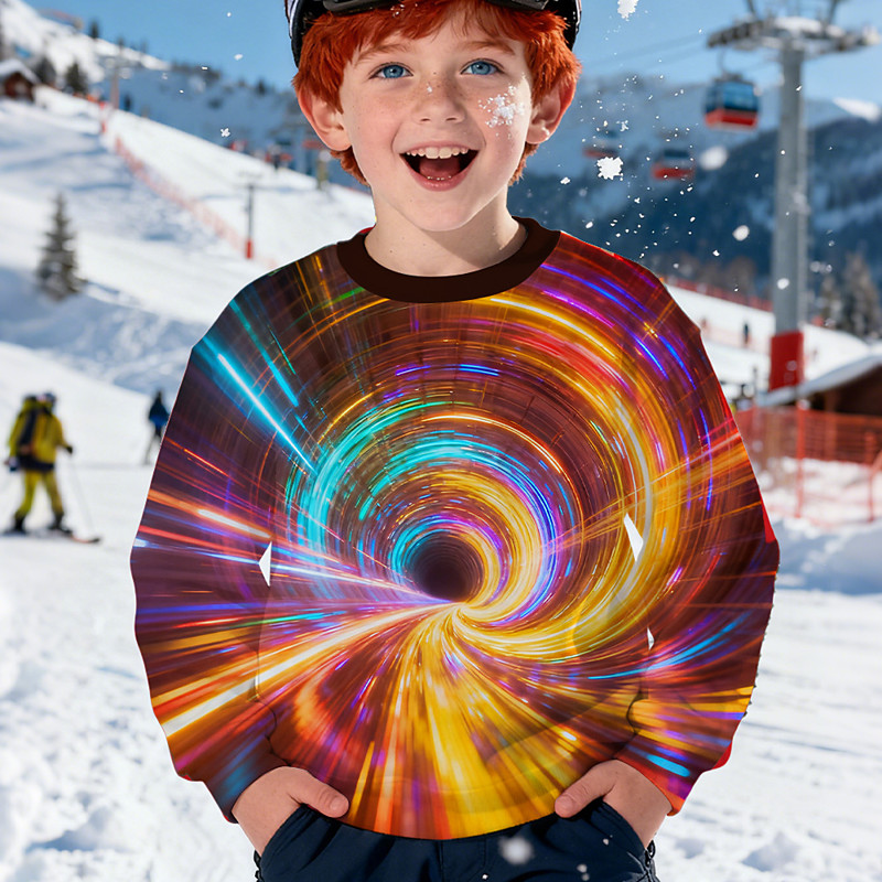 Boys' 3D Graphic Optical Illusion Sweatshirt Long Sleeve Spring Fall Fashion Basic Kids 4-12 Years Crew Neck Outdoor Casual Daily Regular Fit