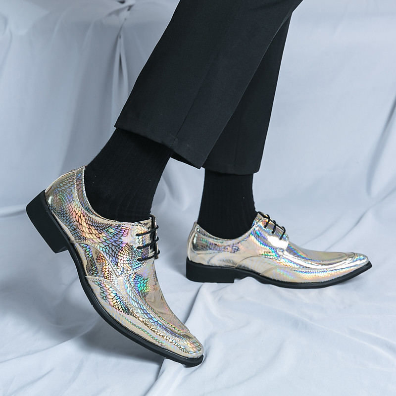 Men's Metallic Green Patent Leather Lace-up Shoes - Trendy Dress Shoes for Modern Professionals