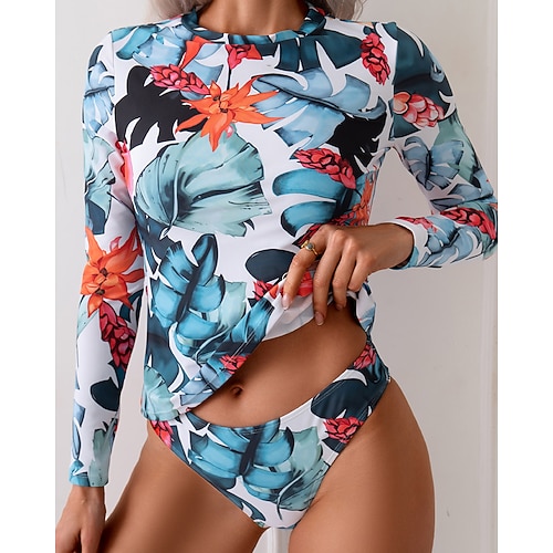 Per donna Top sottomuta Costume da bagno 2 pezzi Top sottomuta Costumi da bagno Blu Protezione solare UPF 50 Manica Lunga - Surf Spiaggia Nuoto Estate