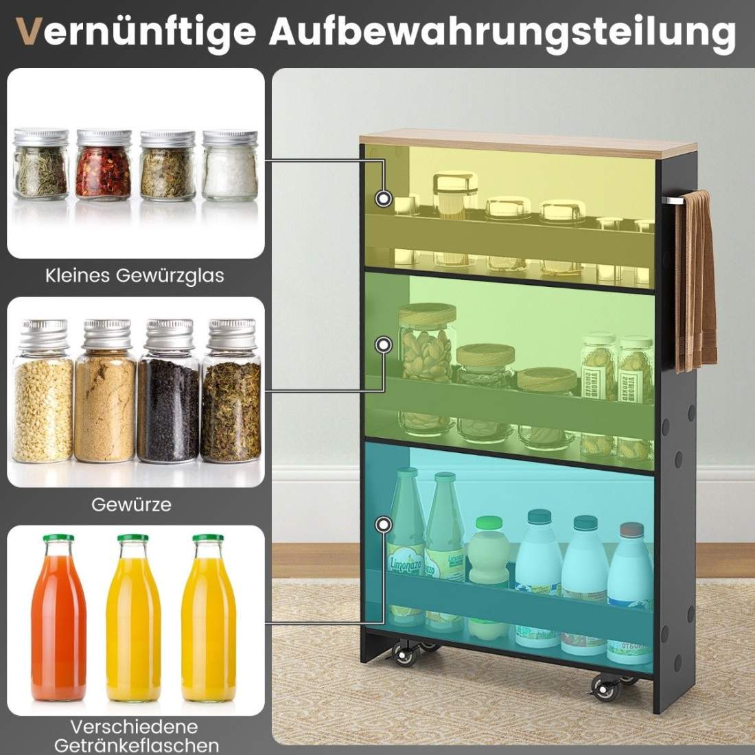 4-lags rullende kjøkkenvogn av tre med håndtak – svart og naturlig