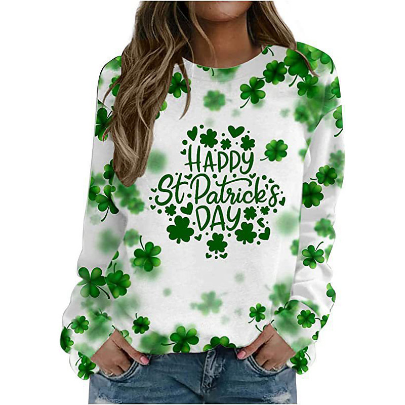 St. Patrick's Day Women's Lucky T Shirt Heart Shamrock Fashion Long Sleeve Round Neck Regular Tops St.Patrick's Day Casual Print Grass Green Black White Light Green Dark Green Spring Fall