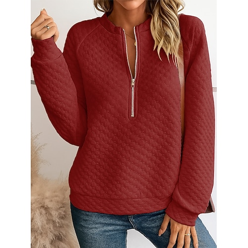 Per donna Set Casual Manica Lunga Mezza zip Top Regolari Rosa chiaro Verde chiaro Vino Rosa scuro Blu Primavera Autunno