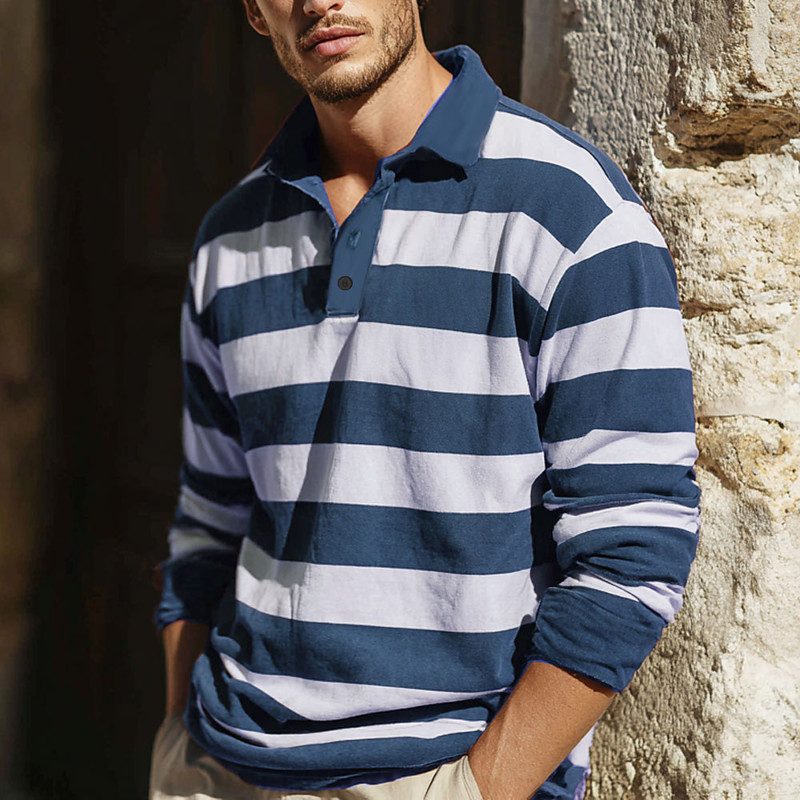 Men's Horizontal Stripes Rugby Polo Long Sleeve Polo Shirts Collared Shirts Sportswear Casual School Outdoor Athleisure 3D Print Spring Fall Winter Maroon Blue Green