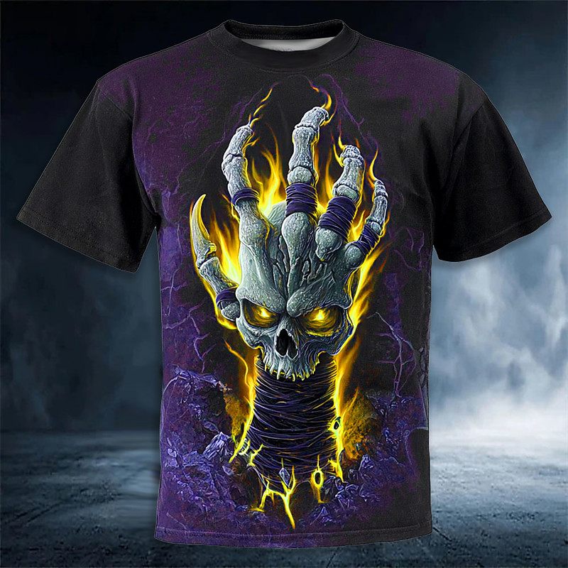 Men's Optical Illusion 3D Bone T Shirt Short Sleeve T shirt 3D Print Crew Neck Shirt Exaggerated Designer Horror Party Street Holiday Blue Yellow Red Summer Spring All Seasons Clothing Apparel S M L