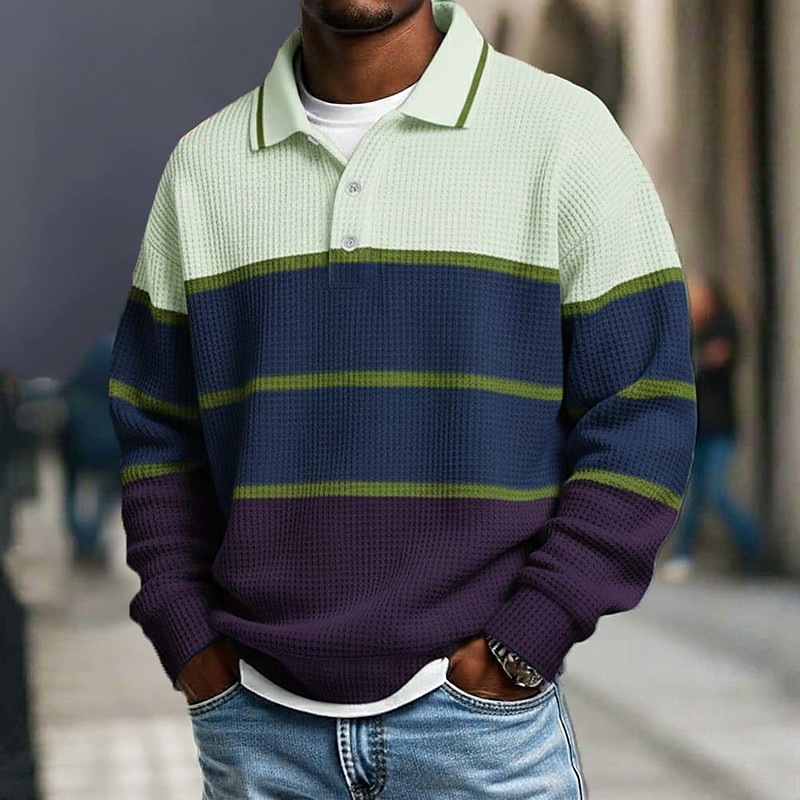 Men's Striped Zip Polo Shirts Long Sleeve Polo Shirts Grandad Collar Casual School Athleisure Holiday Daily Wear 3D Print Quarter Zip Polo Spring Fall Red Purple Orange
