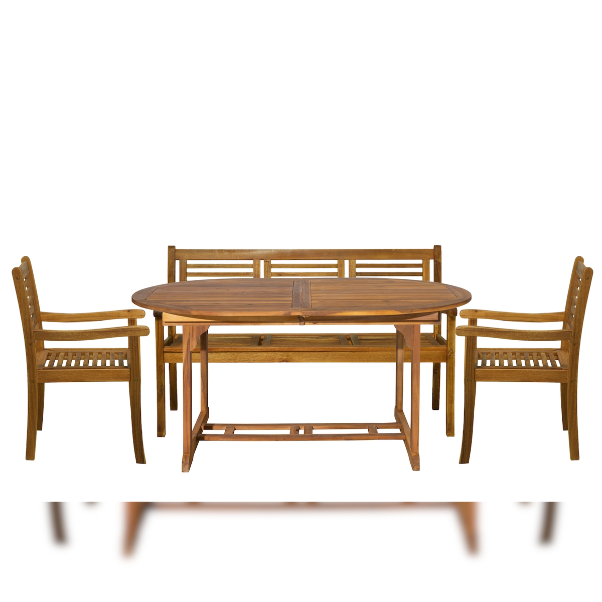 Möbilia 4-tlg. Garten-Sitzgruppe | 1 Tisch, 2 Armlehnstühle, 1 Bank | Akazie-Holz natur | 31020018 | Serie GARTEN