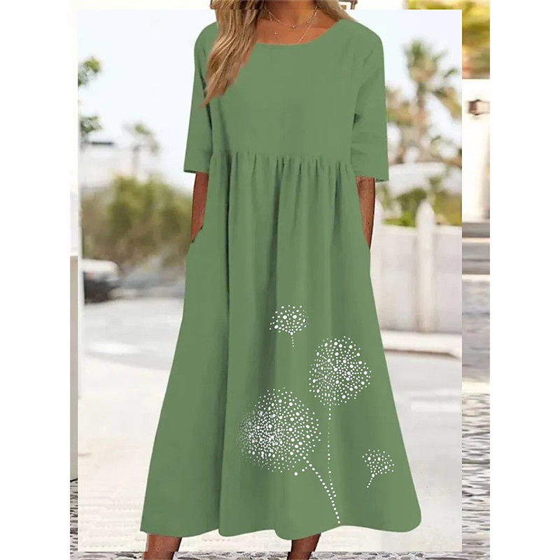 Women's Blue ArmyGreen Black Summer Spring Fall Maxi Dress Cotton Blend Casual Dress Tunic Dress Basic Casual Mature Daily Outdoor Vacation Loose Fit Dandelion Crew Neck
