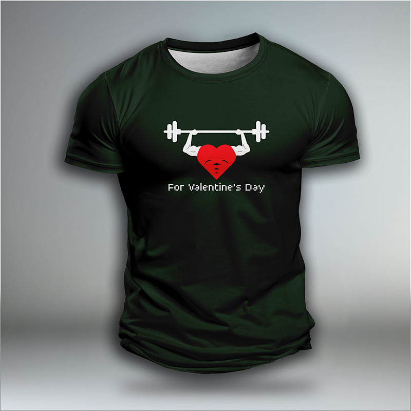 Valentine's Day Men's Heart Graphic Character Slogan Short Sleeve T shirt 3D Print Crew Neck Shirt Daily Outdoor Casual Party Casual Holiday Black Burgundy Blue Summer Spring Fall Clothing