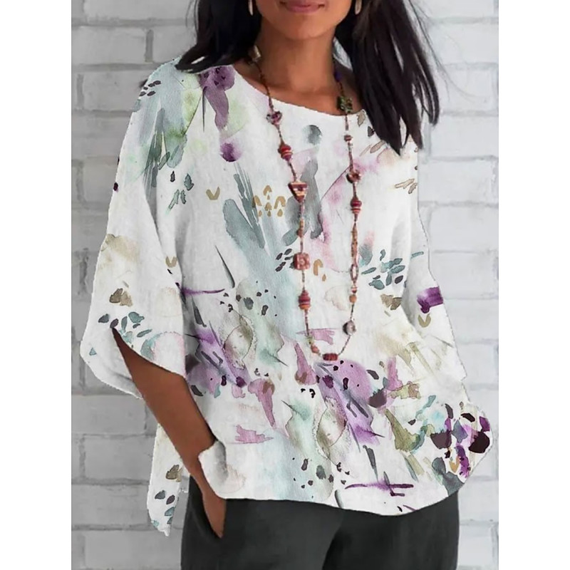 Women's Shirt Floral Daily Casual 3/4 Length Sleeve Crew Neck Regular Tops Daily Holiday Print White Blue Green Summer Spring Fall