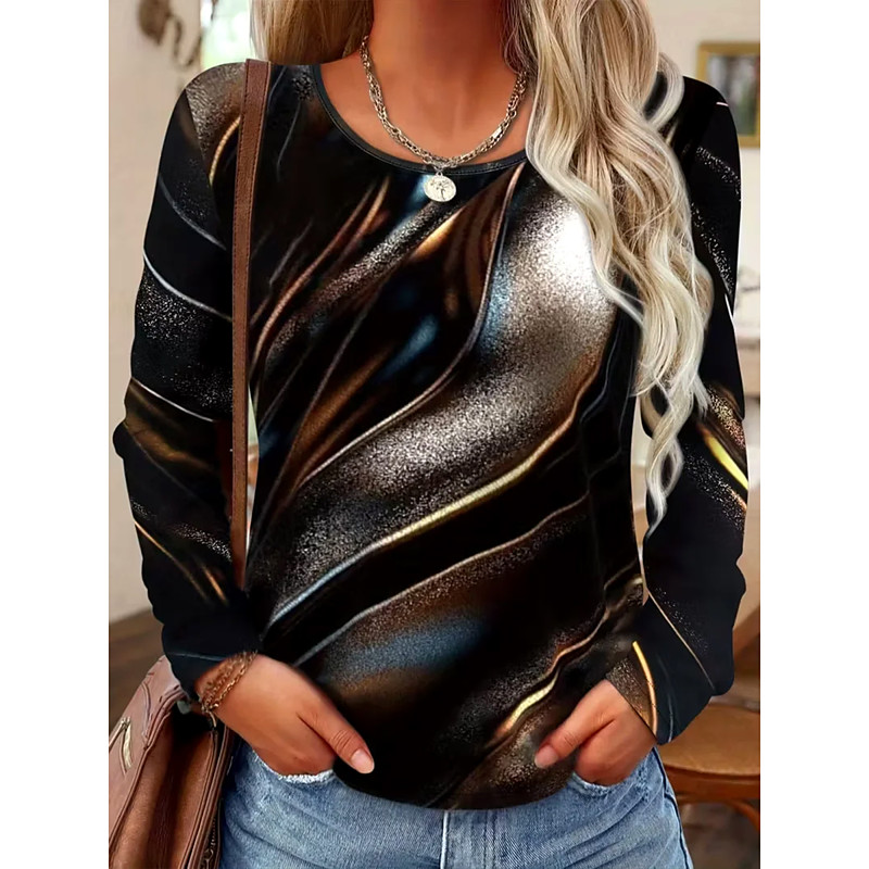 Women's T Shirt Graphic Striped Abstract Vintage Fashion Stylish Long Sleeve Crew Neck Round Neck Regular Tops Daily Weekend Print Brown Fall Winter