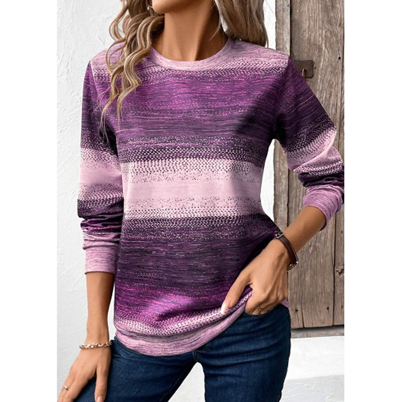 Women's T Shirt Ombre Graphic Geometric Fashion Stylish Classic Long Sleeve Crew Neck Round Neck Regular Tops Daily Weekend Print Purple Brown Green Summer Spring Fall