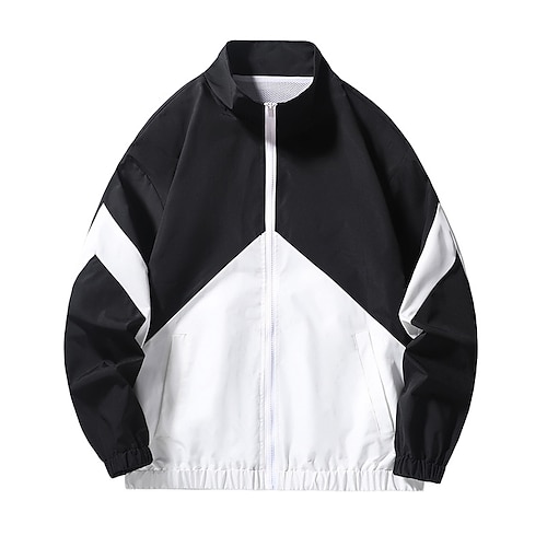Per uomo Geometrico Calcio estivo Partita globale Giaccia da corsa Giacca da esterno Giacca sportiva Primavera Autunno Cerniera Tasca Blocco di colore Manica Lunga Asciugatura Rapida Leggero