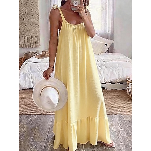 Per donna Abito lungo maxi Abito maxi Abito a Tubino Vestito Estivo Abiti in cotone e lino Vestito Casual Vacanza Essenziale Moderno Quotidiano Weekend Vestibilità comoda Semplice Senza Maniche