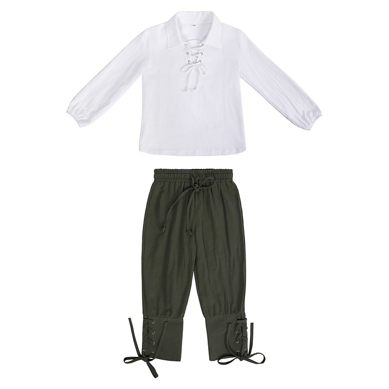 Vintage Book Week 2026 Medieval Pants Outfits Shirt Pirate Ranger Solid Color Fancy Dress Boys' Pirate Masquerade Performance Masquerade LARP Kid's Shirt Pants
