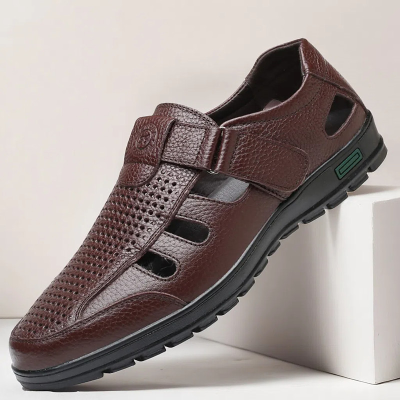 Men's Sandals Walking Casual PU Leather Breathable Comfortable Slip Resistant Buckle Black Brown Summer Spring Fall