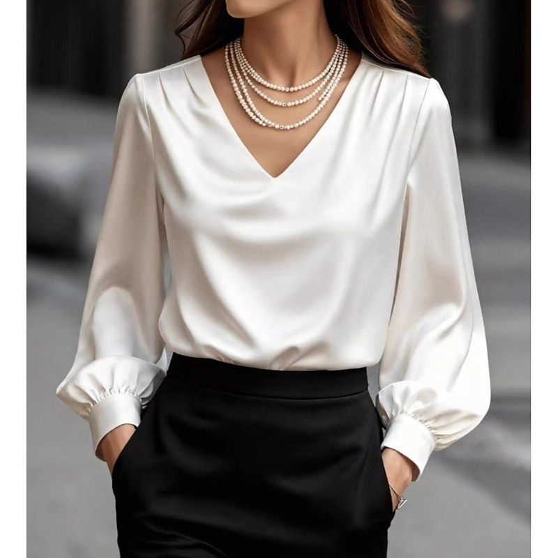 Women's Shirt Elegant Long Sleeve Bishop Sleeve V Neck Daily Work Black White Wine Beige Spring Fall