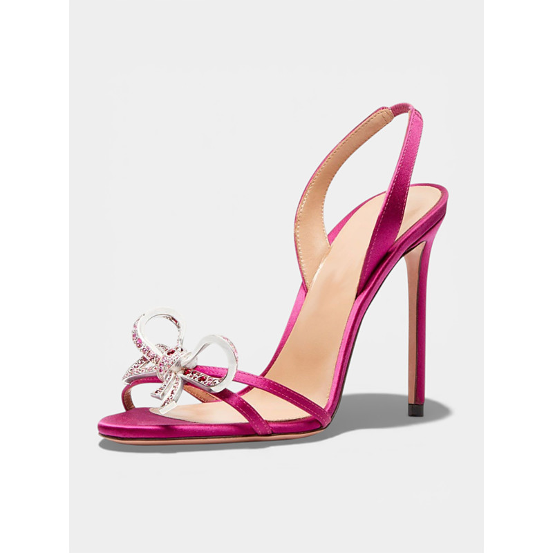 Women's Silver Bow Stiletto Heels, Elegant Slingback High Heel Sandals for Bride, City Chic Wedding Evening Ceremony